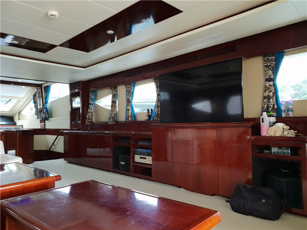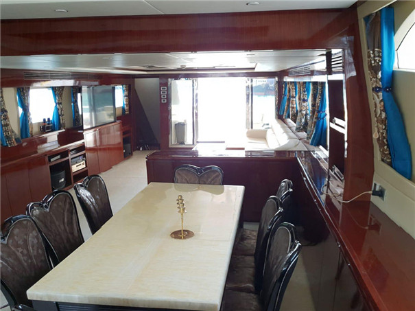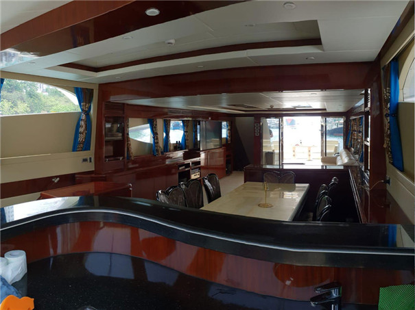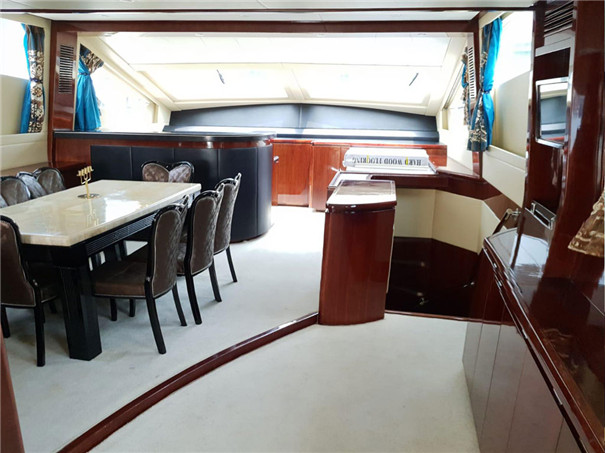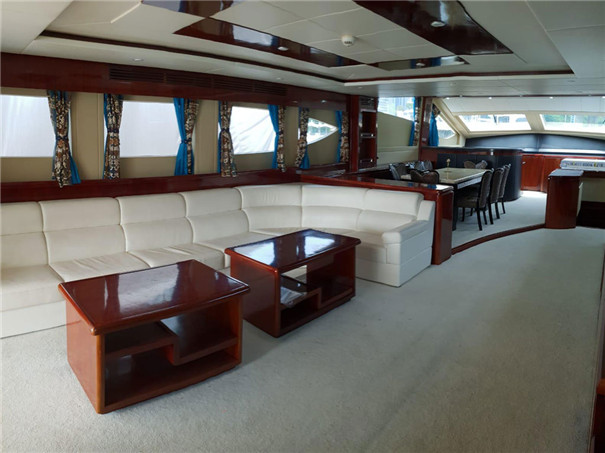 这艘游艇的尺寸在香港以及算得上是比较大的游艇了,45人的容纳人数和90英尺的船身足以让您可以举办中型的海上游艇派对,不论您是想作为一个公司的团建,还是商务接待,它就可以满足您的需求。甚至连求婚生日等朋友众多的宾客都不显得拥挤。如果您想举办一场中型的结婚宴请,这艘游艇也能满足您的需求哦!