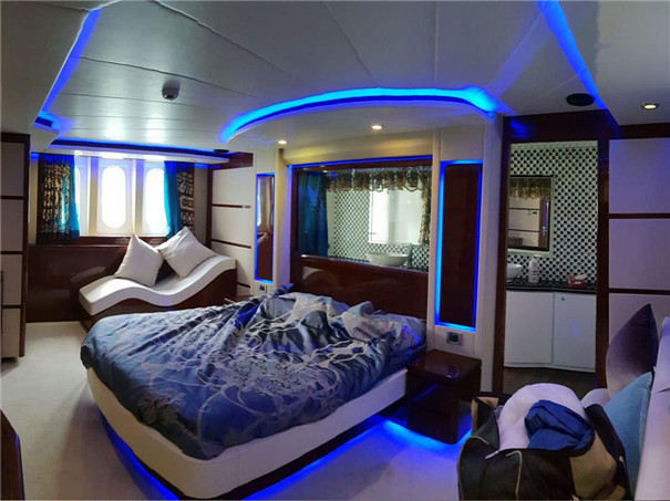我们这架游艇配有冷气空调,有雪柜,有室内音响电视,有KTV,有洗手间和更衣室,还有微波炉电磁炉,总之,家里有的我们这艘游艇基本上都有。另外我们还提供额外的娱乐设备如浮毯、扑克、骰子、冰桶冰块以及滑梯泳池等