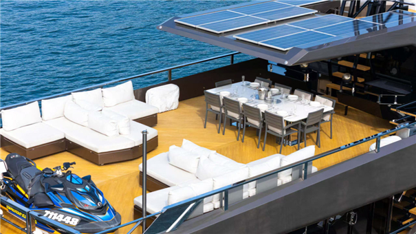 此游艇名为EVADNE Rock 85,是一家土耳其游艇公司生产,2005年成立,是一家具备丰富专业知识和经验的游艇生产公司,今时今日,已发展成为拥有2400平方米的船坞、600平方米的总部办公楼和200平方米的社交设施区域的大型游艇生产企业。这是一支高度专业的团队,他们精通游艇建造的所有环节。从设计到材料采购,从制造到装配,他们都以卓越的技术和创新的思维为客户定制生产独一无二的游艇。 为Evadne Yachts成为游艇建造业的全球著名品牌奠定了良好的基础。