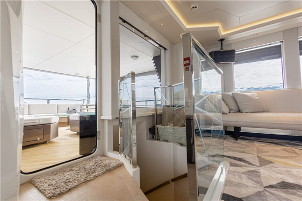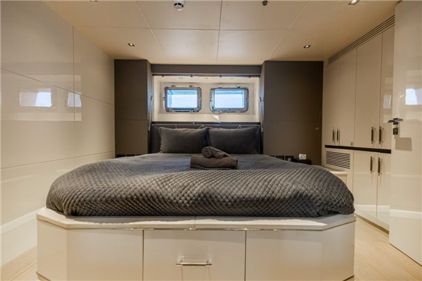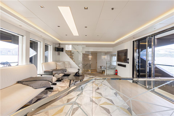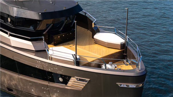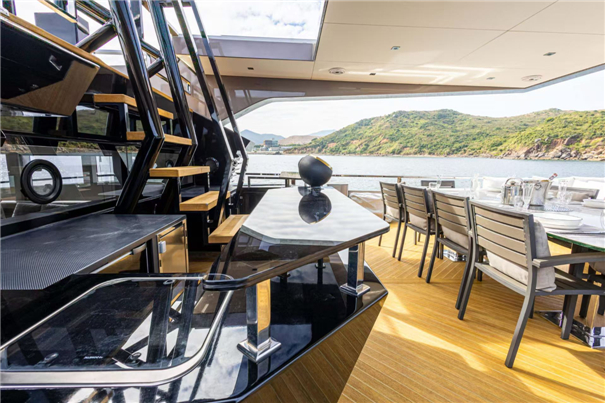 如果你亲眼目睹这艘特别的ROCK85,就会被她的独特魅力折服,ROCK 85在一经推出便获得青睐,有别于同尺寸的量产型超级游艇,船长26米的ROCK 85完全采用类似超级游艇的定制式建造模式,船体使用定制的钢铝结构,保证了船体的强度和船身的牢固,菱角分明的外观尽显硬汉般阳刚之气,精湛的铝合金工艺使得船身刚毅而不失柔美。停泊于码头时一眼就能看出她的体型超越了其他游艇品牌同尺寸的船型,完全就是一艘定制型的超级游艇。完美、惊艳就是她给你的初印象。